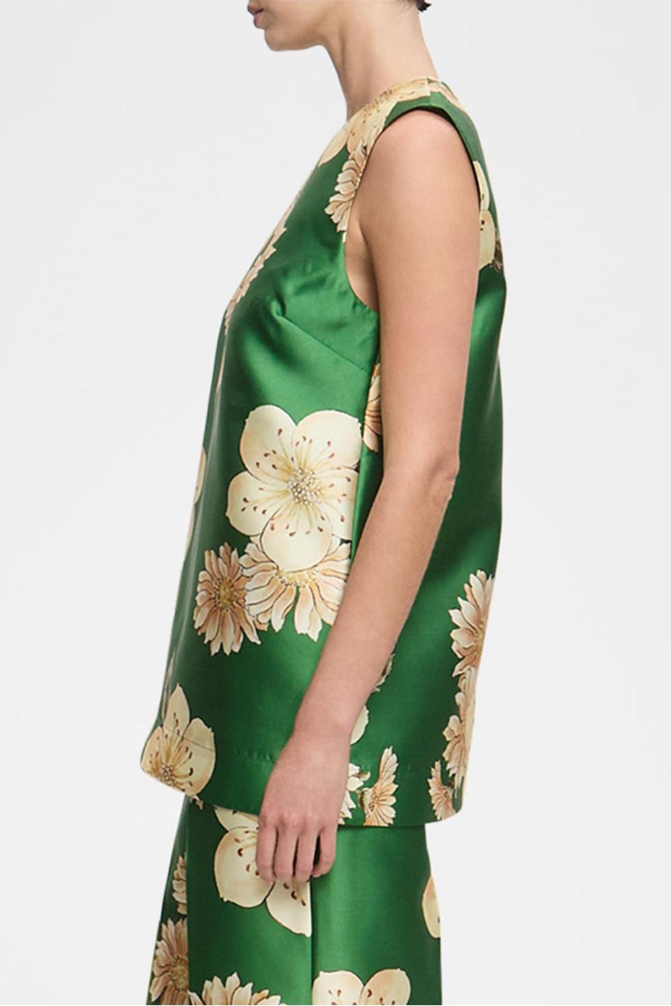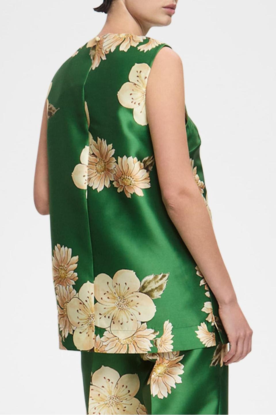 Effortlessly chic and artfully detailed, the Sage Sleeveless Pants Set by ALEMAIS features a silky blouse illustrated with graphic floral blooms and matching pants adorned in a soothing sage motif. The blouse offers a relaxed fit with a crew neckline and sleeveless silhouette, while a delicate keyhole with button closure at the back adds a refined finishing touch. The coordinating pants feature side pockets for ease and function, bringing together style and comfort in one breezy ensemble.
